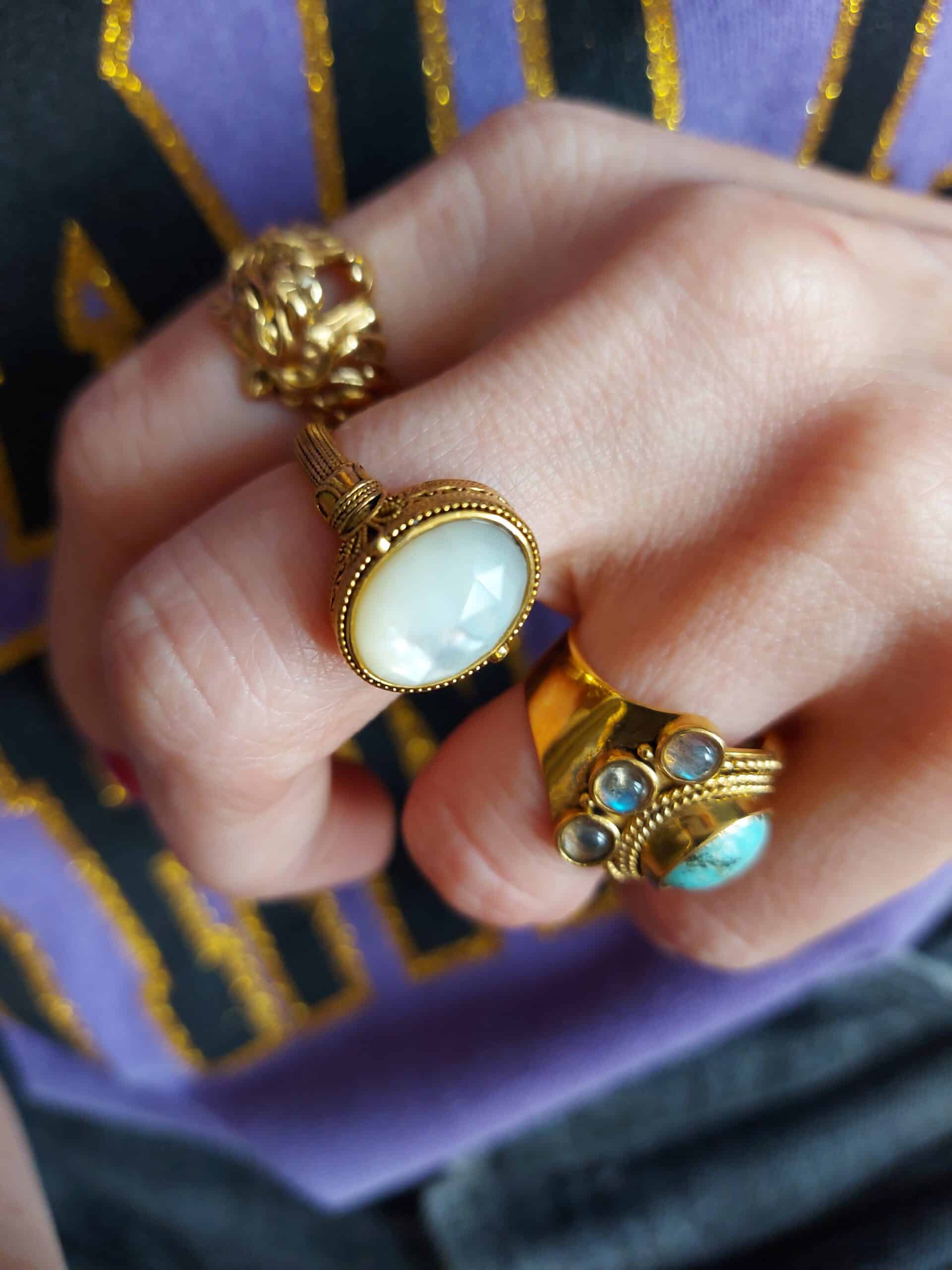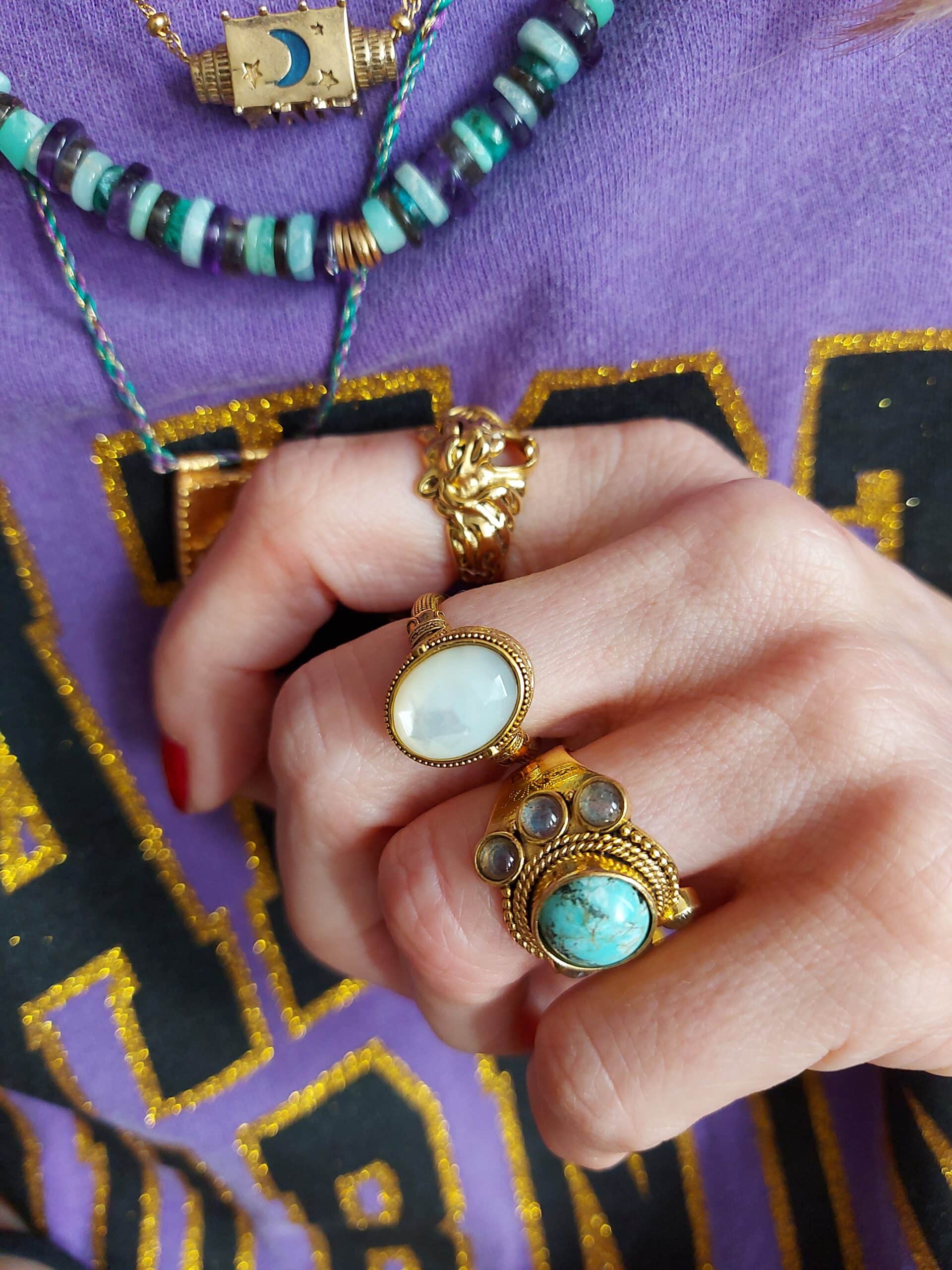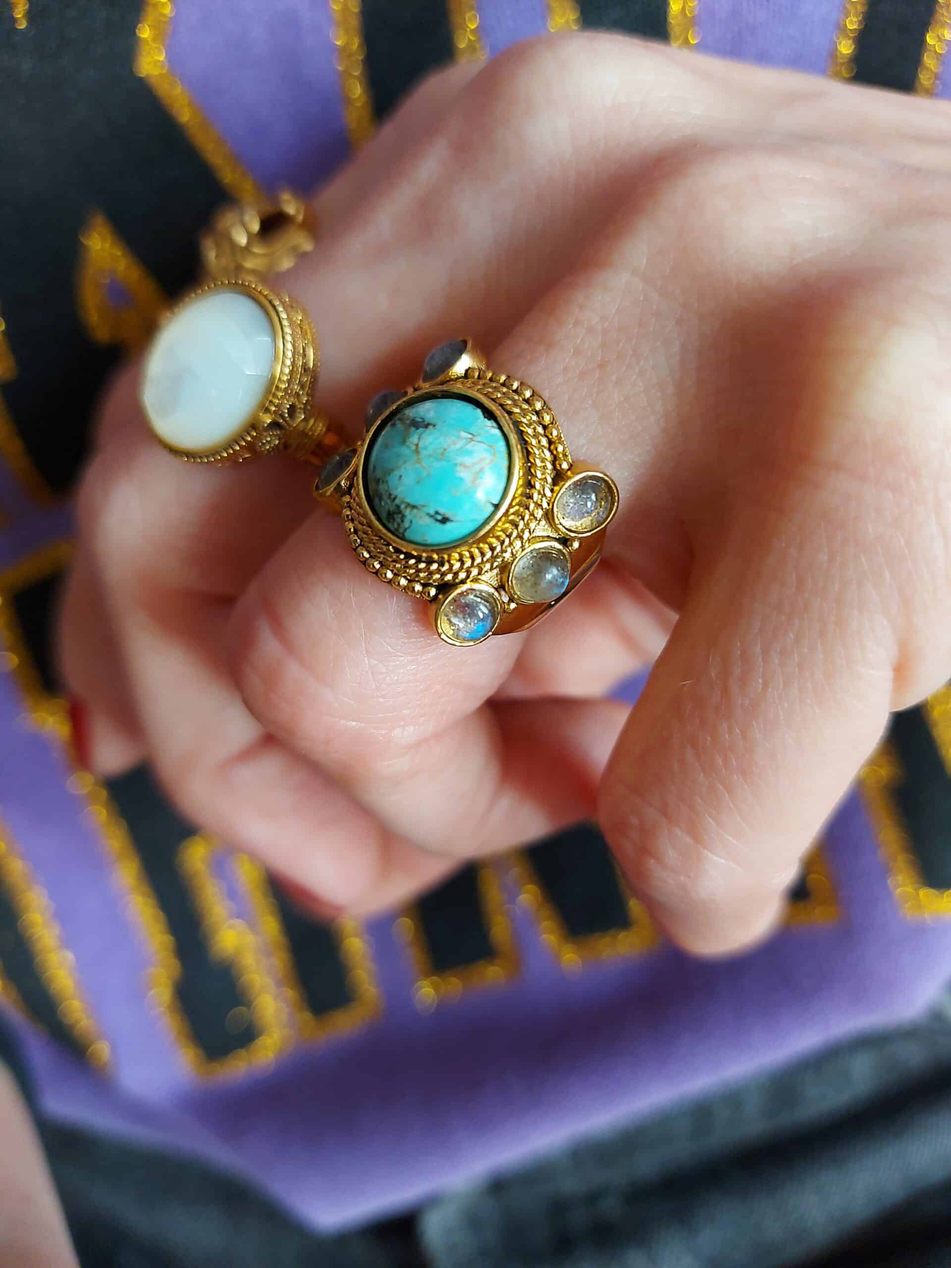 On ♥ : La bague dorée avec pierre centrale semi-précieuse facettée