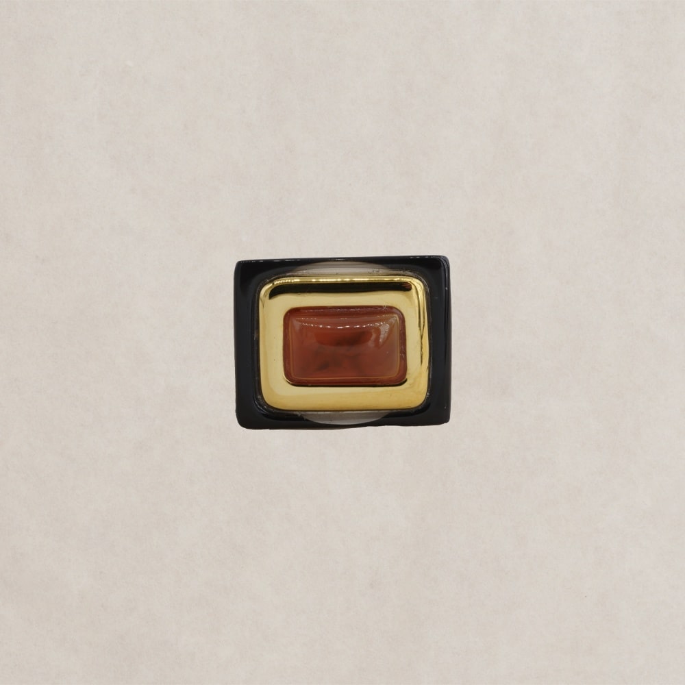 La bague large en résine Ambre de Lucas Jack London est une création unique qui combine élégance et audace. Son anneau en résine translucide, large et confortable, s’évase pour accueillir un cabochon rectangulaire lisse et doré, encadré de résine blanche. Inspirée du style des années 70, cette bague aux volumes généreux et à la forme oversize est à la fois légère et sophistiquée. Le mélange subtil entre la résine translucide et les détails dorés en fait une pièce incontournable pour toutes celles qui recherchent un accessoire tendance et intemporel. Parfait pour ajouter une touche de modernité à toutes vos tenues, du quotidien aux occasions spéciale