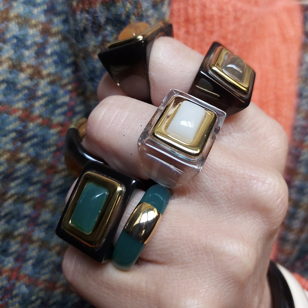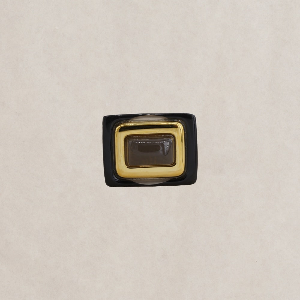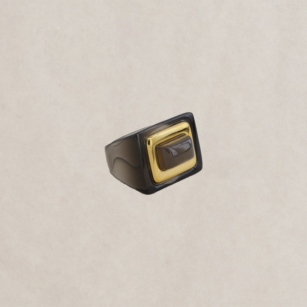 La bague large en résine quartz fumé de Lucas Jack London est une création unique qui combine élégance et audace. Son anneau en résine translucide, large et confortable, s’évase pour accueillir un cabochon rectangulaire lisse et doré, encadré de résine blanche. Inspirée du style des années 70, cette bague aux volumes généreux et à la forme oversize est à la fois légère et sophistiquée. Le mélange subtil entre la résine translucide et les détails dorés en fait une pièce incontournable pour toutes celles qui recherchent un accessoire tendance et intemporel. Parfait pour ajouter une touche de modernité à toutes vos tenues, du quotidien aux occasions spéciale