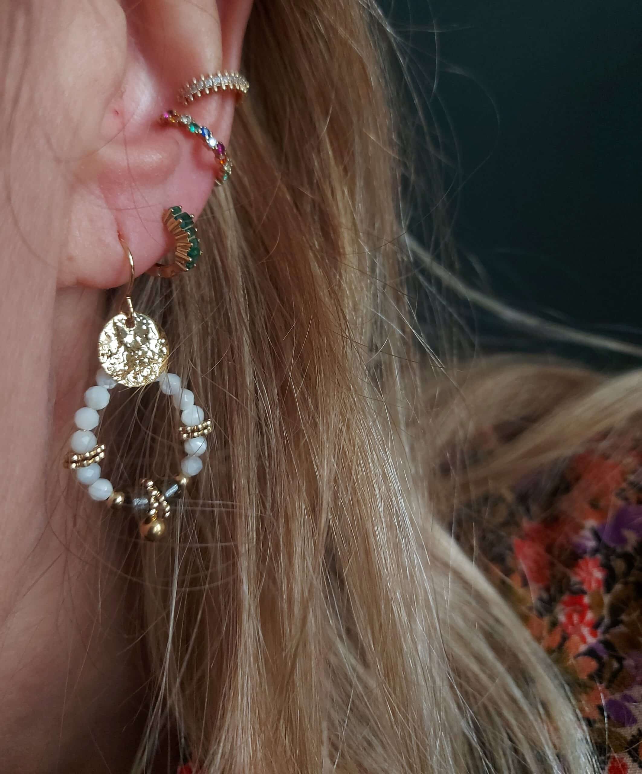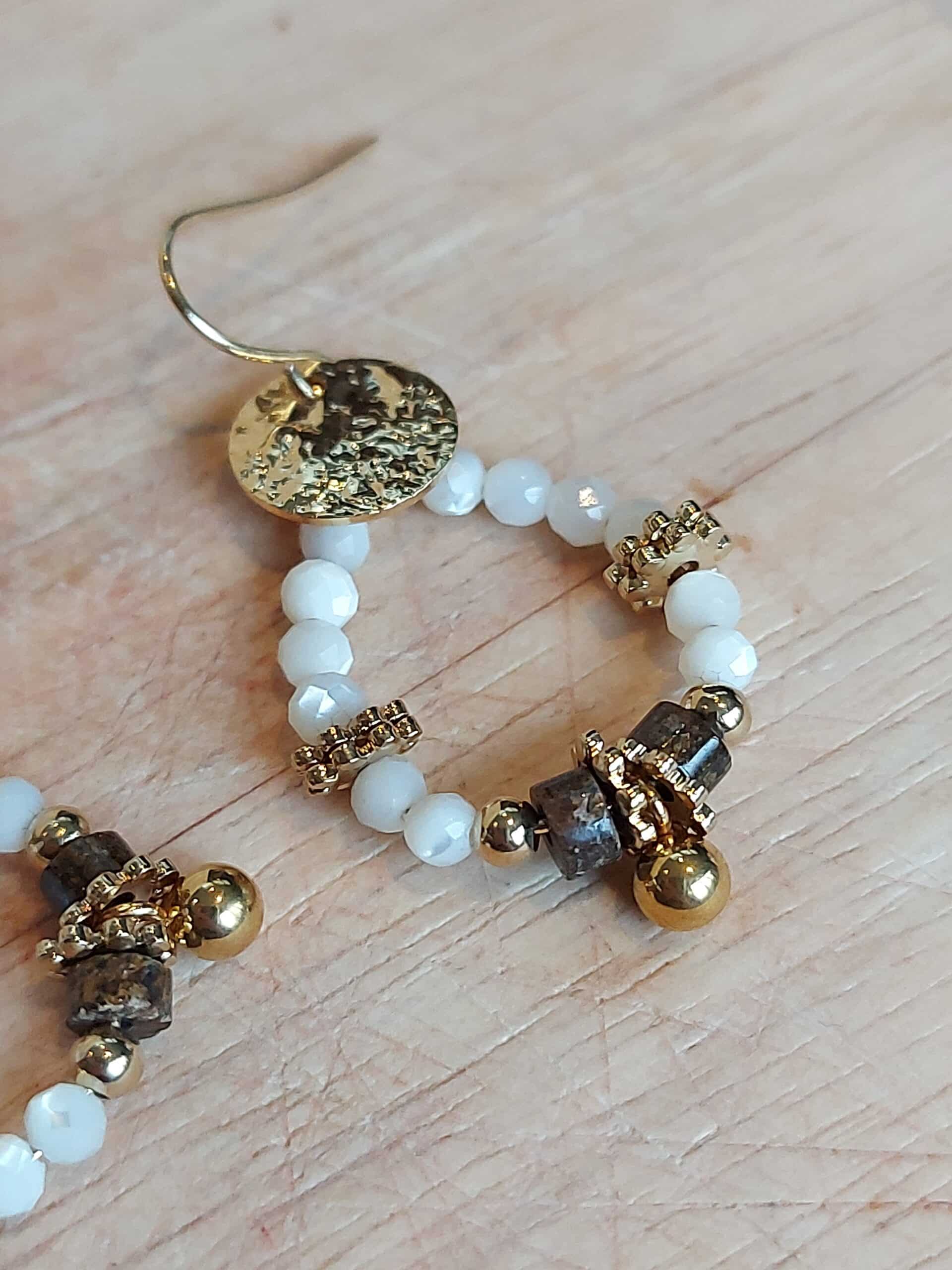 Découvrez ces boucles d’oreilles élégantes et raffinées, créées et imaginées par Petite Madame. Les bijoux sont conçus dans de belles matières en laiton doré avec des pierres naturelles dans son petit atelier à Guérande.