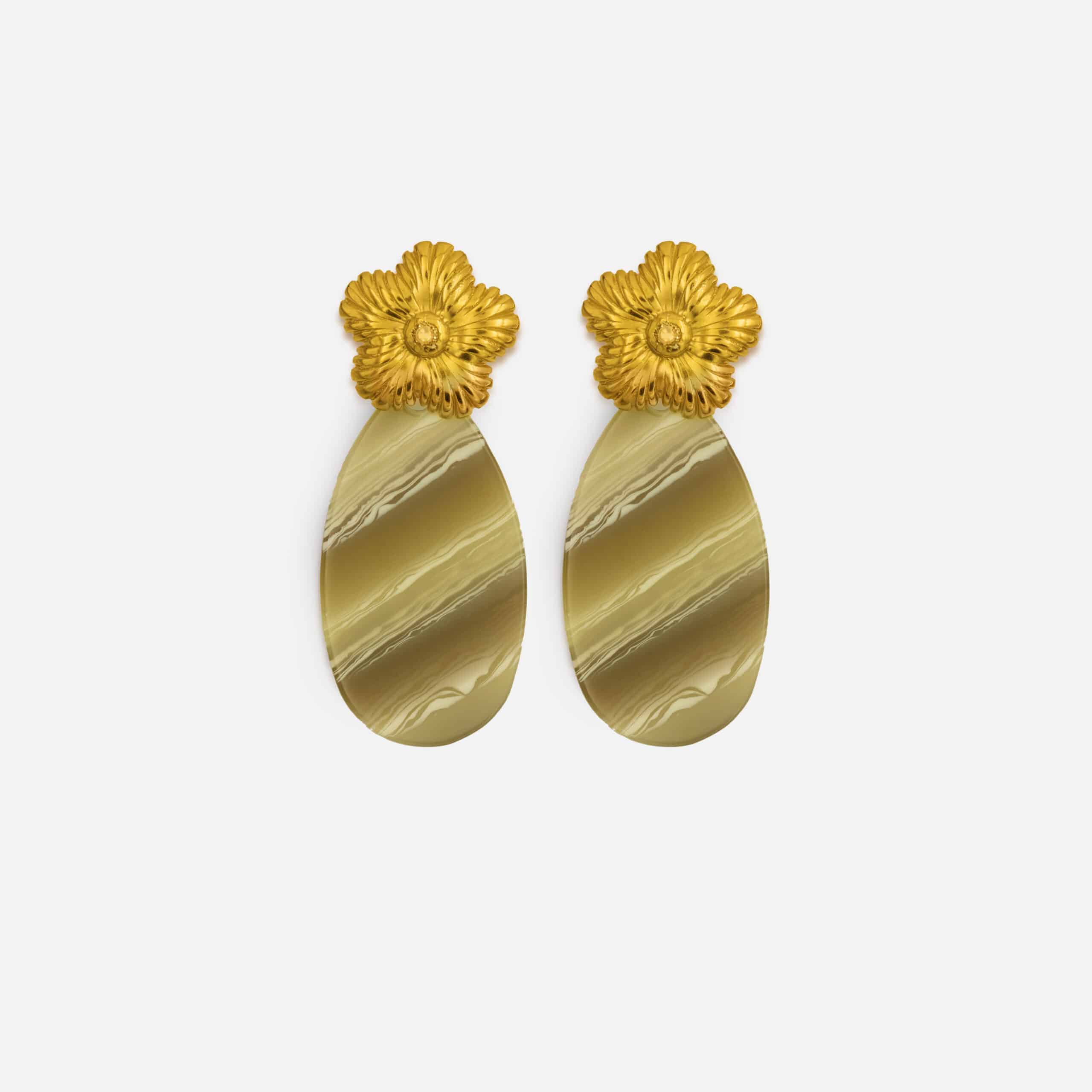 Un bijou solaire et singulier, alliant acétate et fleur ciselée dorée à l’or fin. Dolita a choisi ce modèle pour sa fusion de matières, à la fois moderne et féminine. Chaque paire est une invitation à oser la couleur et la douceur dans un même geste.