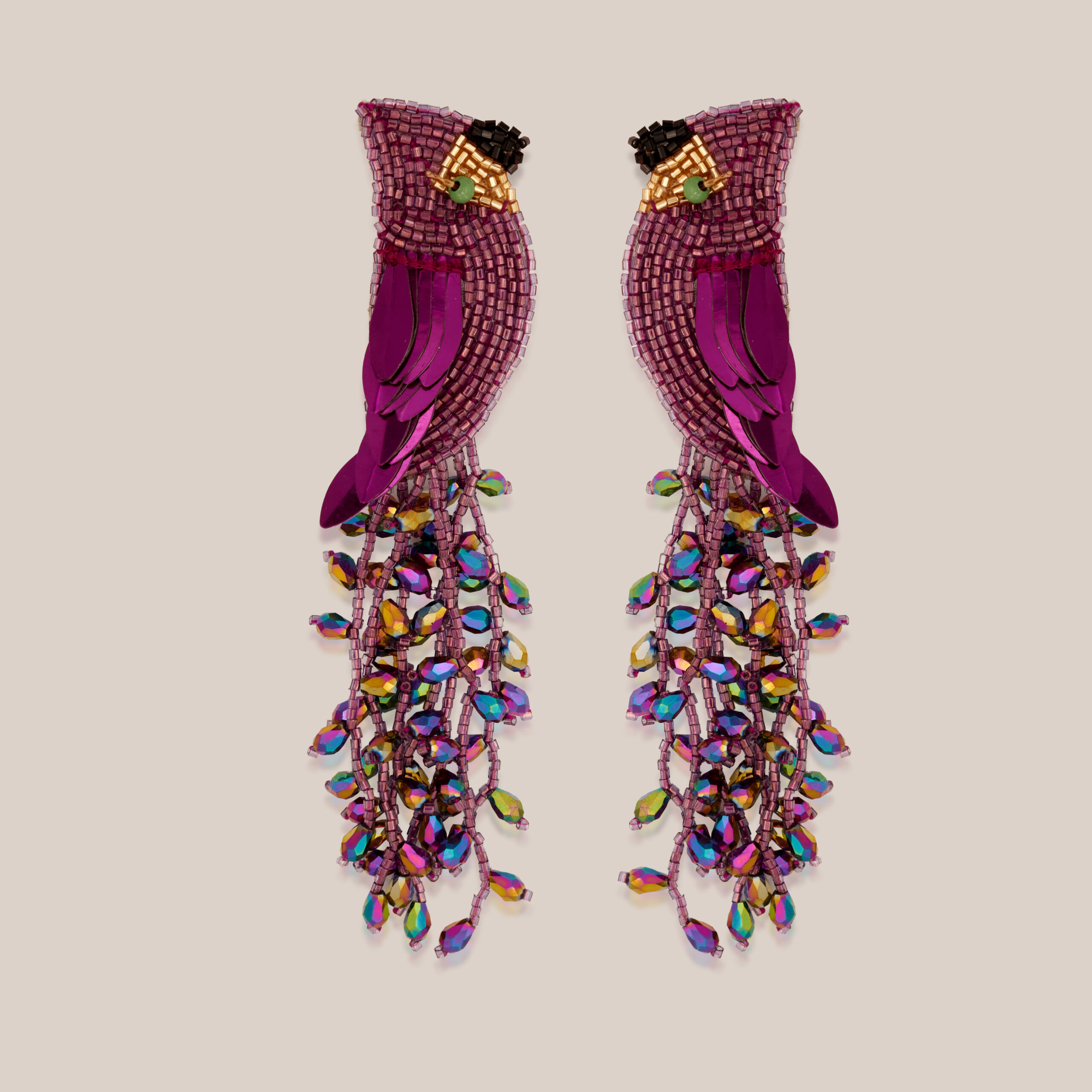 Brochées à la main, les boucles Cardinal prune ajoutent une note vibrante et élégante à toute silhouette.