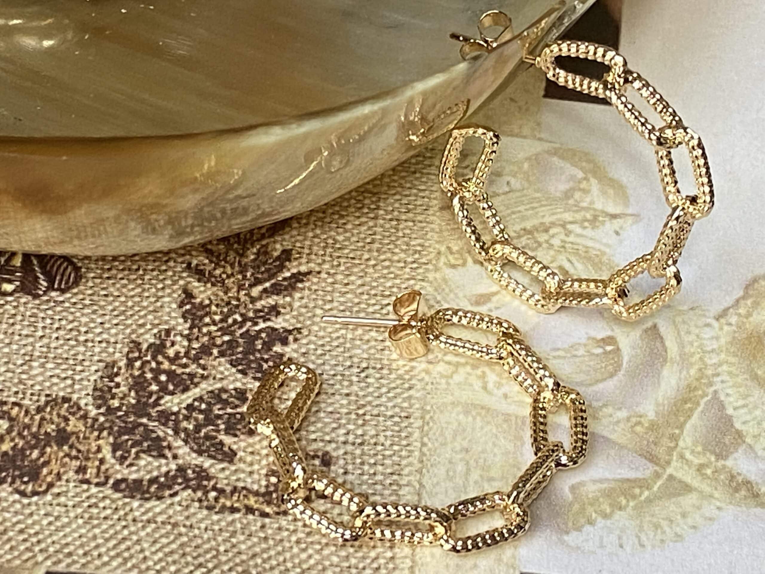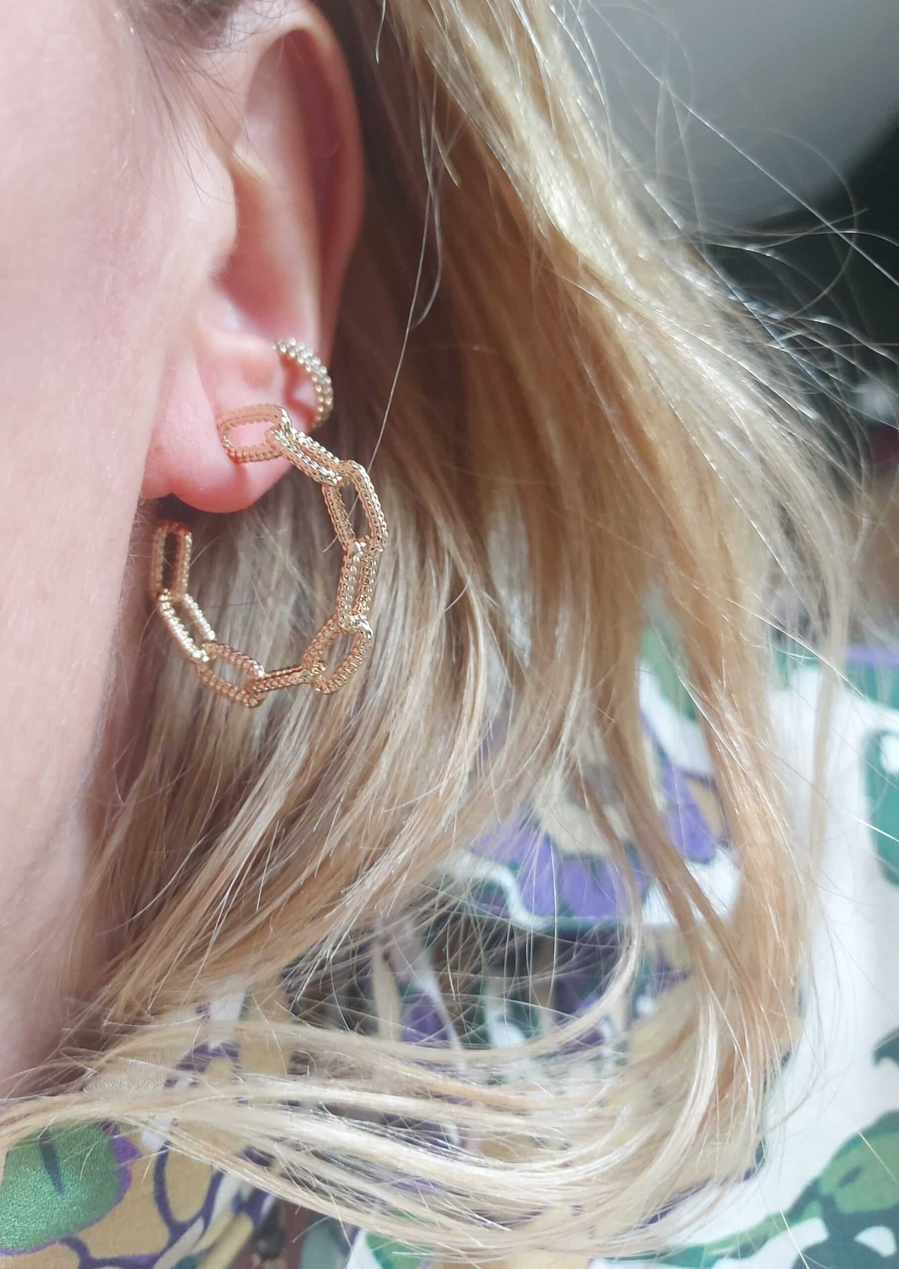 Les boucles d’oreilles créoles dorées en plaqué or 3 microns. Elles sont très légères à porter au quotidien ou pour une soirée. Possibilité de les assortir avec d’autres bijoux d’oreille.