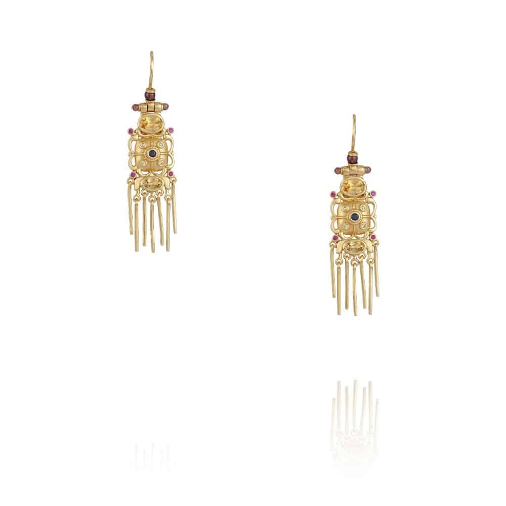 Pierres : Citrine Ovale Facettée 4X6 mm et 3X5 mm, Saphir Bleu Rondes Facetté 2 mm, Zircon Jaune Rondes Facturé 1,2 mm, Grenat 2 mm et 3 mm.