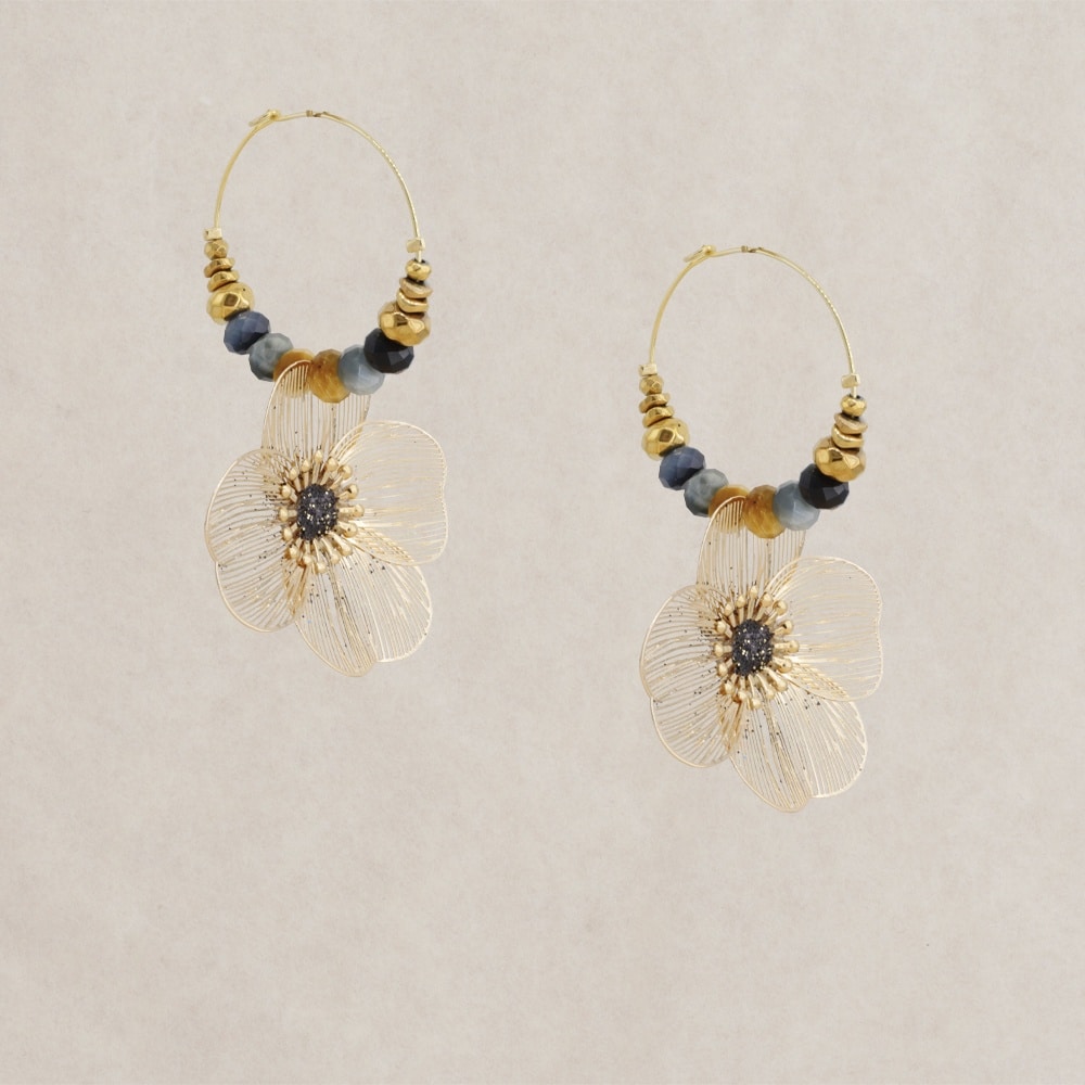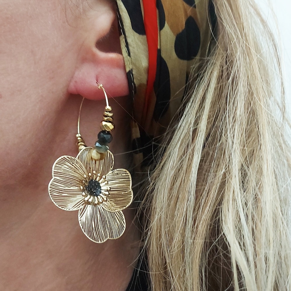 Les Boucles d’Oreilles Fleur dorée longue de la créatrice française Jorgina sont des pièces élégantes et raffinées, parfaites pour rehausser votre style. Fabriquées avec un savoir-faire artisanal, ces boucles d’oreilles mettent en avant une fleur délicate en fil doré, ornée de cristaux scintillants et de perles dorées. L’intérieur de la fleur est rehaussé d’une touche de doré, créant un contraste chic et intemporel.