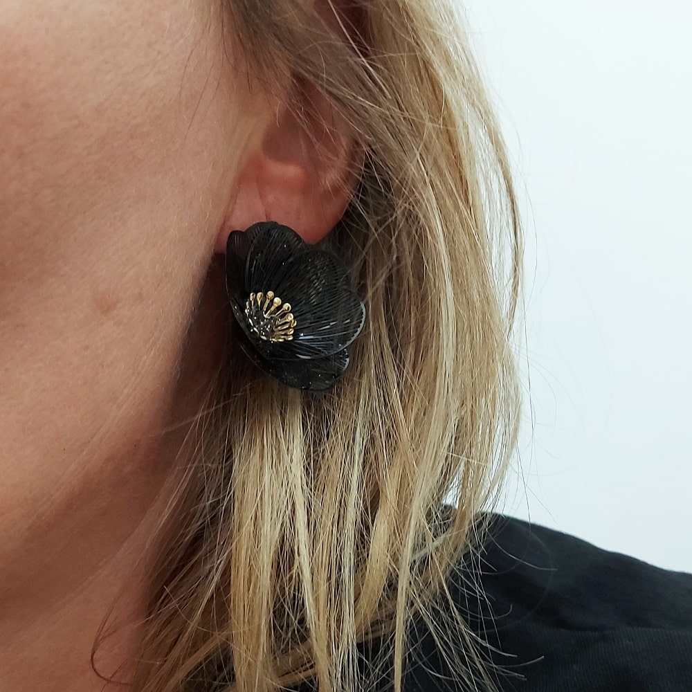 Boucles d’Oreilles Fleur Noire par Jorgina