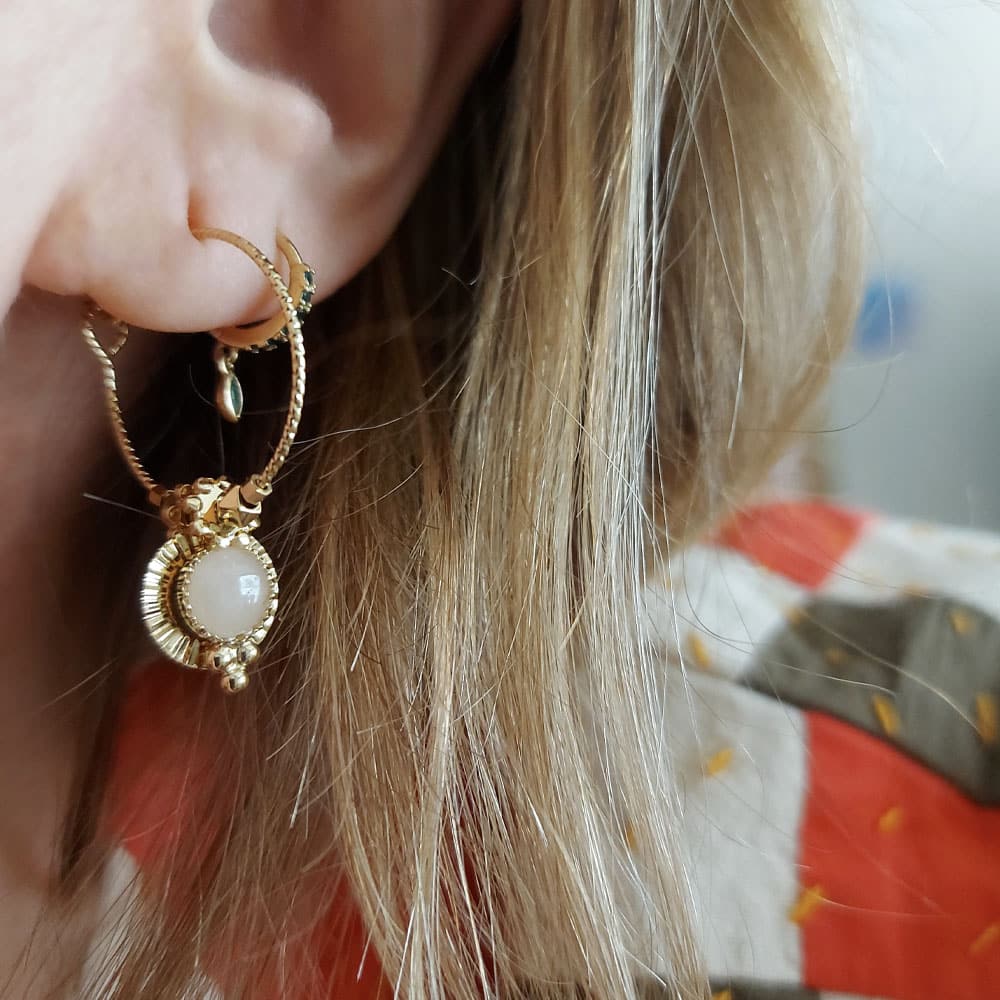 De ses belles pierres naturelles, ces boucles d’oreilles nous charment et seront parfaites à nos oreilles. Avec son identité rétro et chic, la créatrice Petite Madame donne à ses bijoux un effet waouh !
