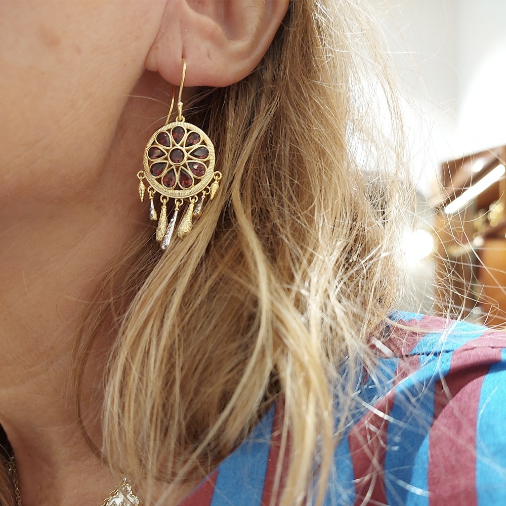 Boucles d’oreilles Koma en plaqué or avec grenat
