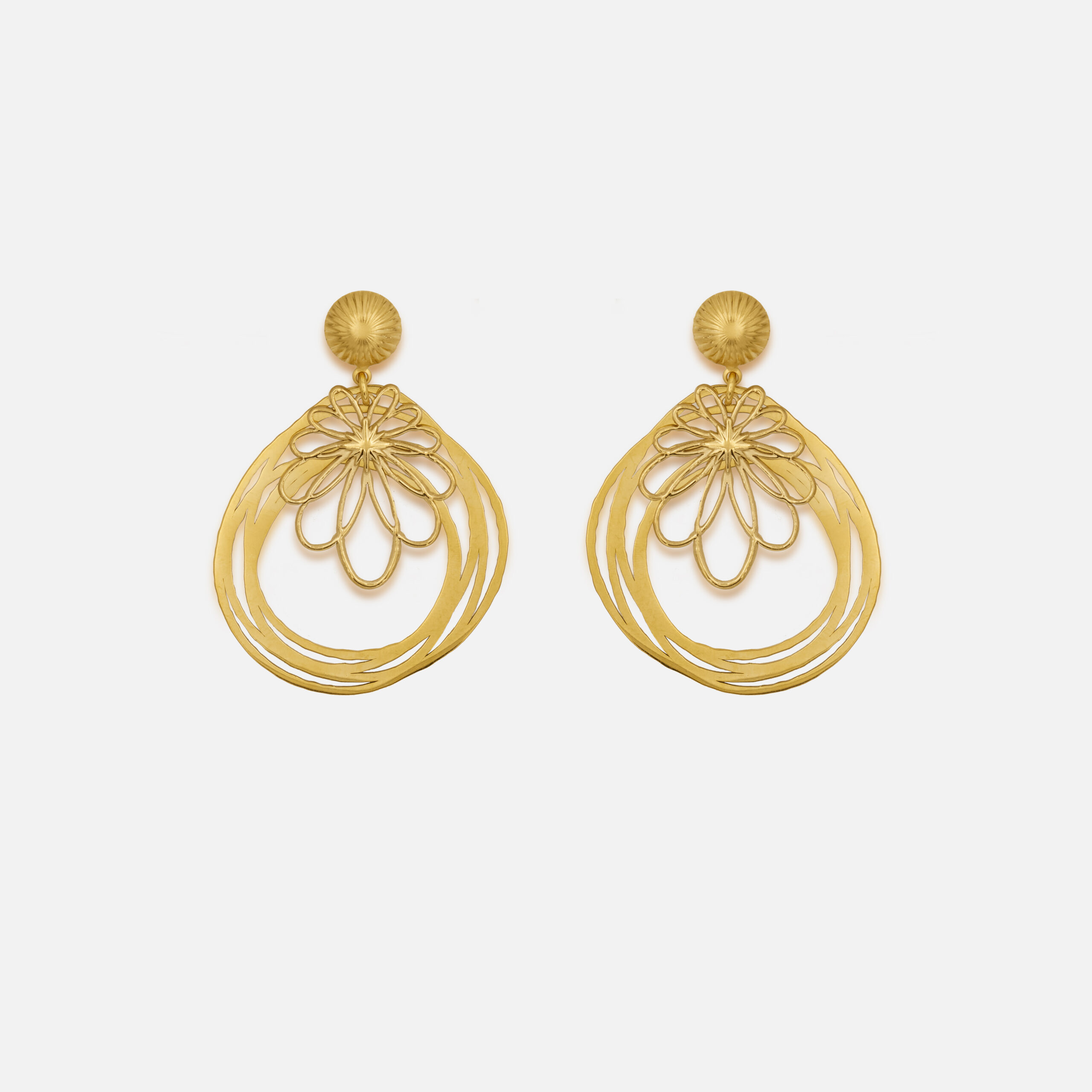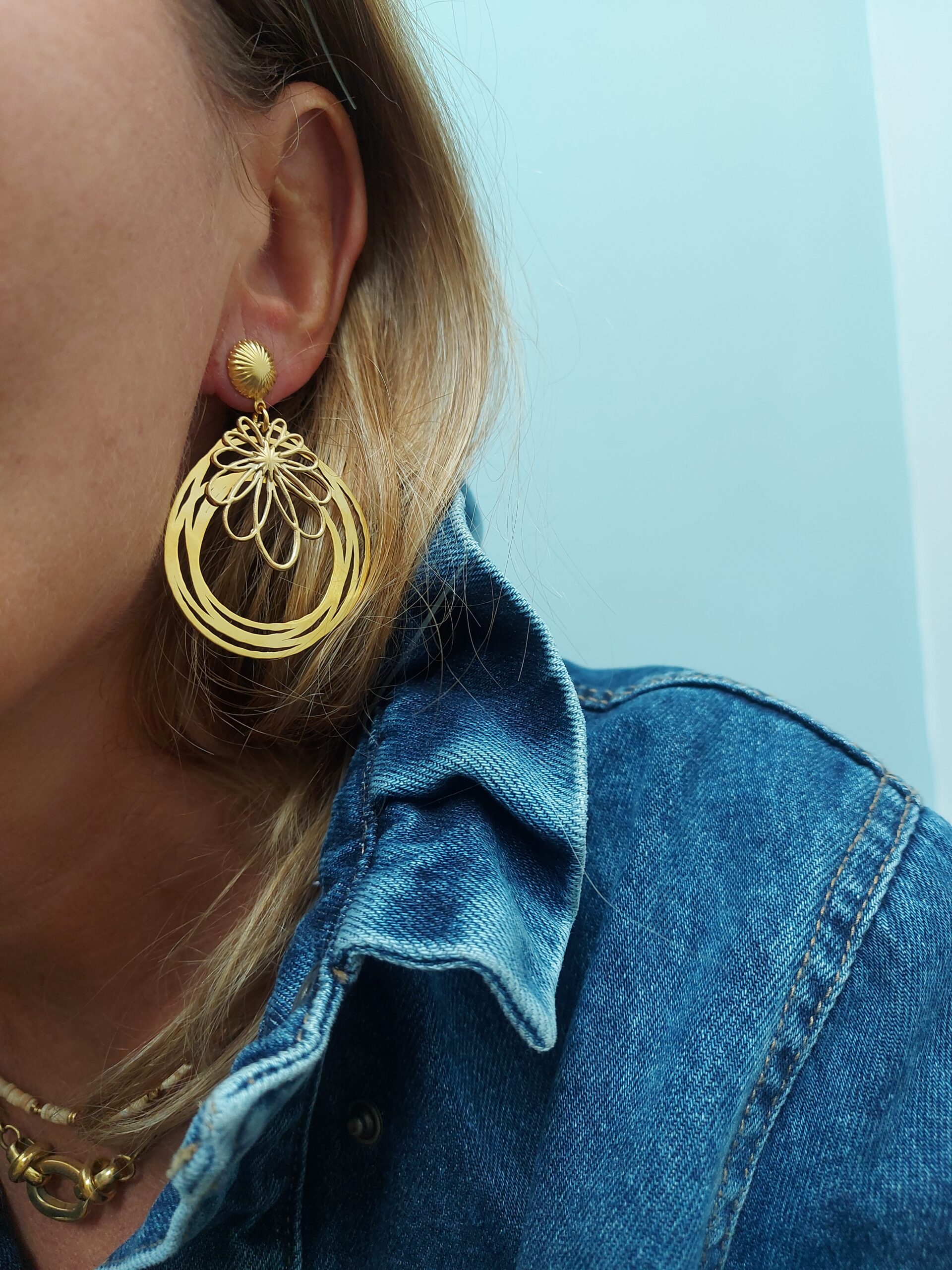 Boucles d’oreilles fantaisies Jorgina doré à l’or fin. 3 anneaux.