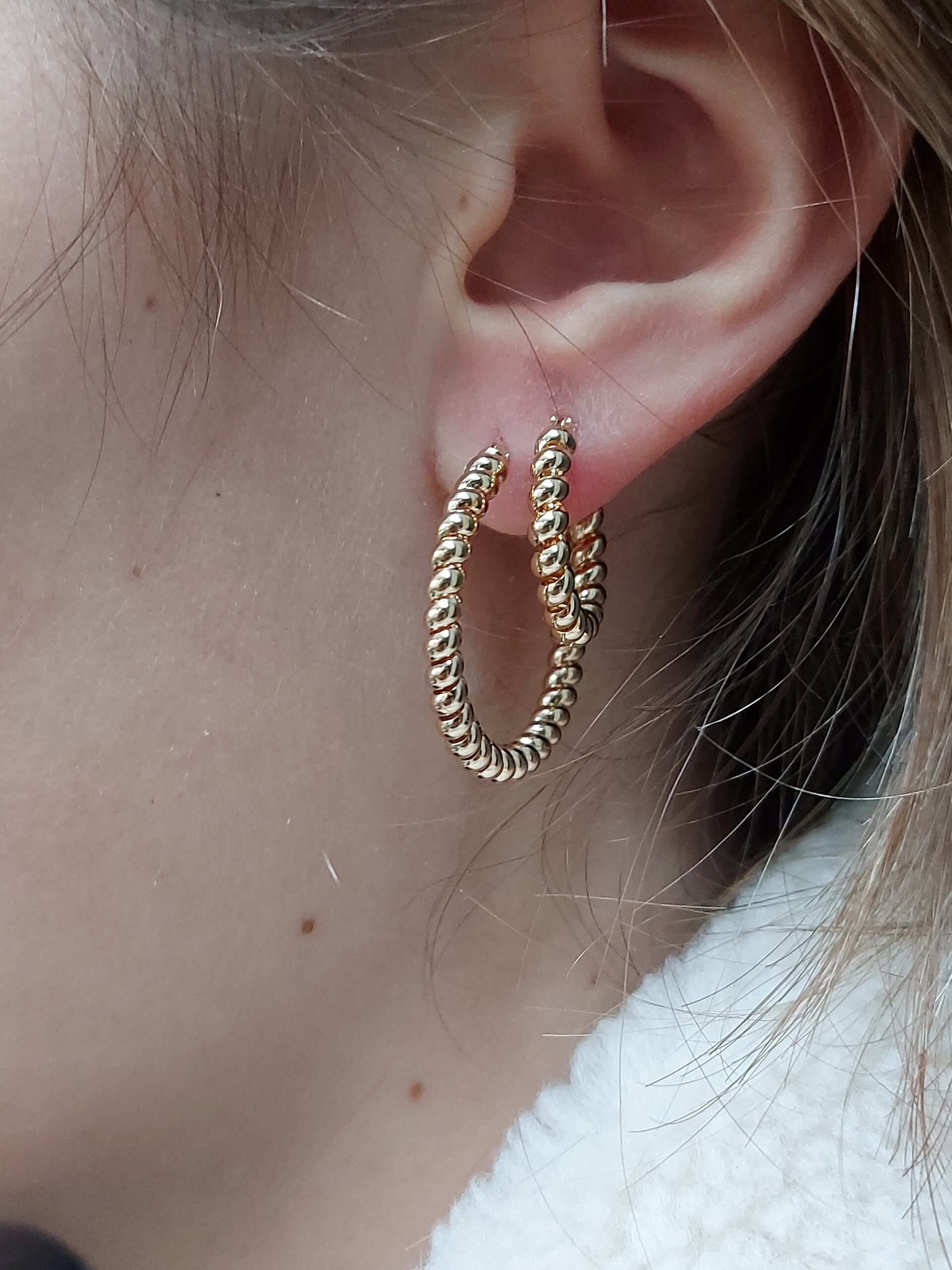 Créoles dorées. Moyen modèle. Plaqué or 3 microns, 18 carats. Base de Laiton