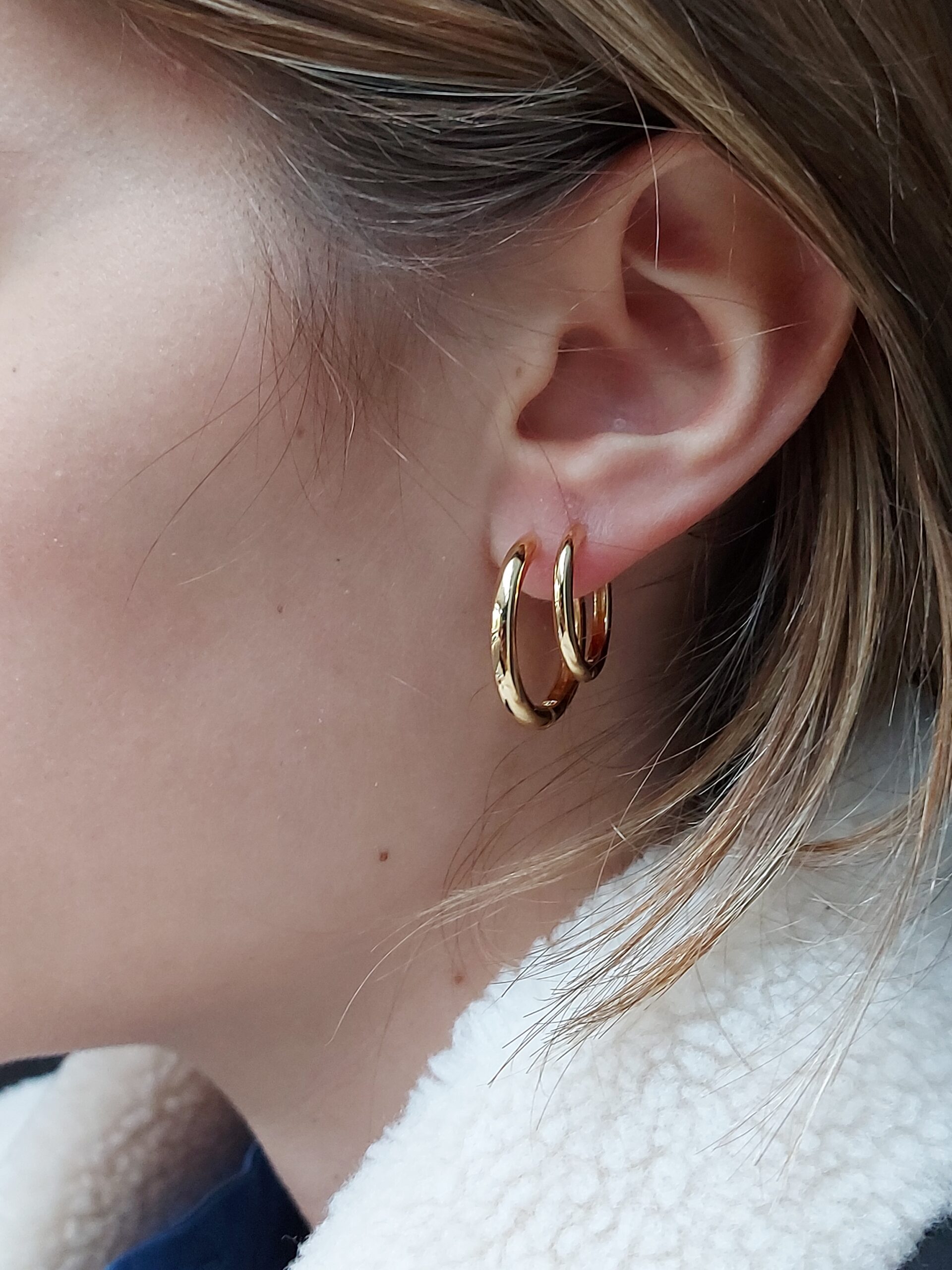 Créoles dorées. Petit modèle. Plaqué or 3 microns, 18 carats. Base de Laiton