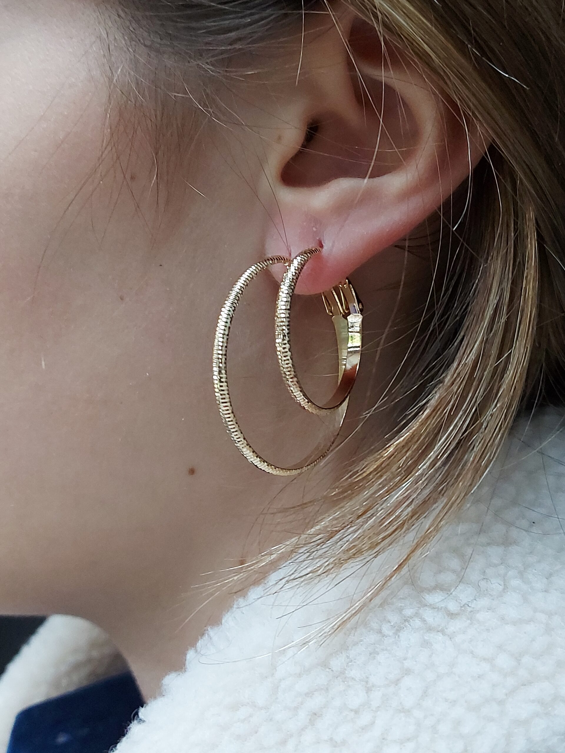 Créoles martelées. Petit modèle. Plaqué or 3 microns, 18 carats. Base de Laiton