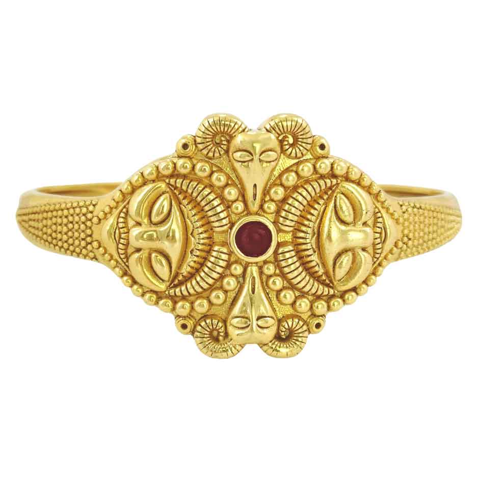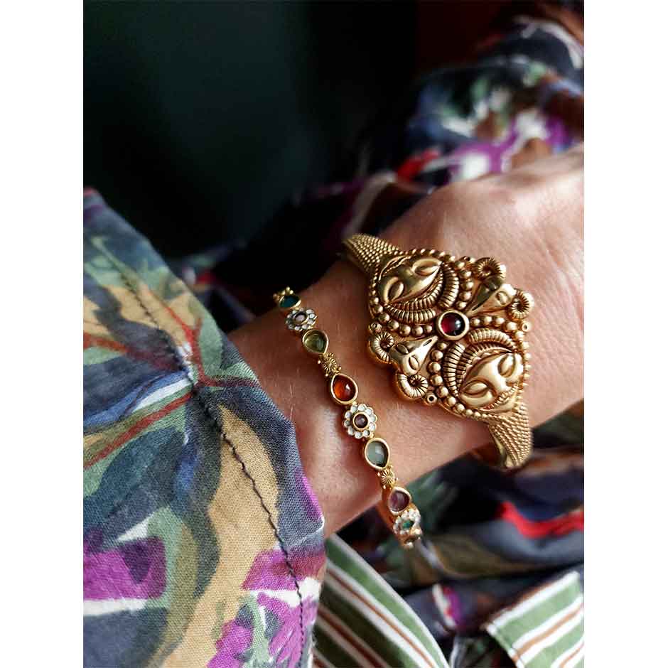 Le bracelet jonc en laiton bain d’or avec cabochon pierre naturelle grenat.