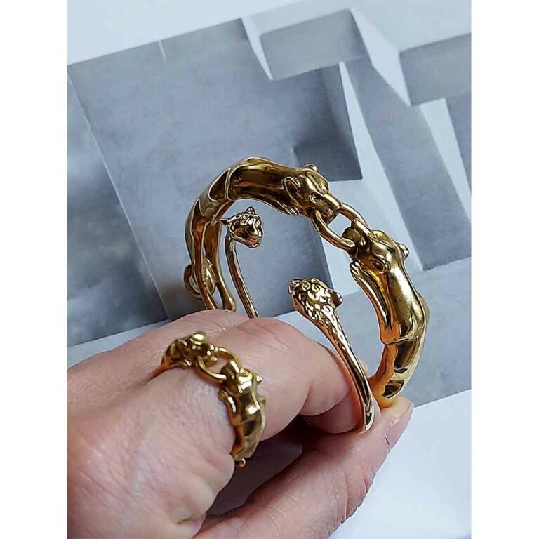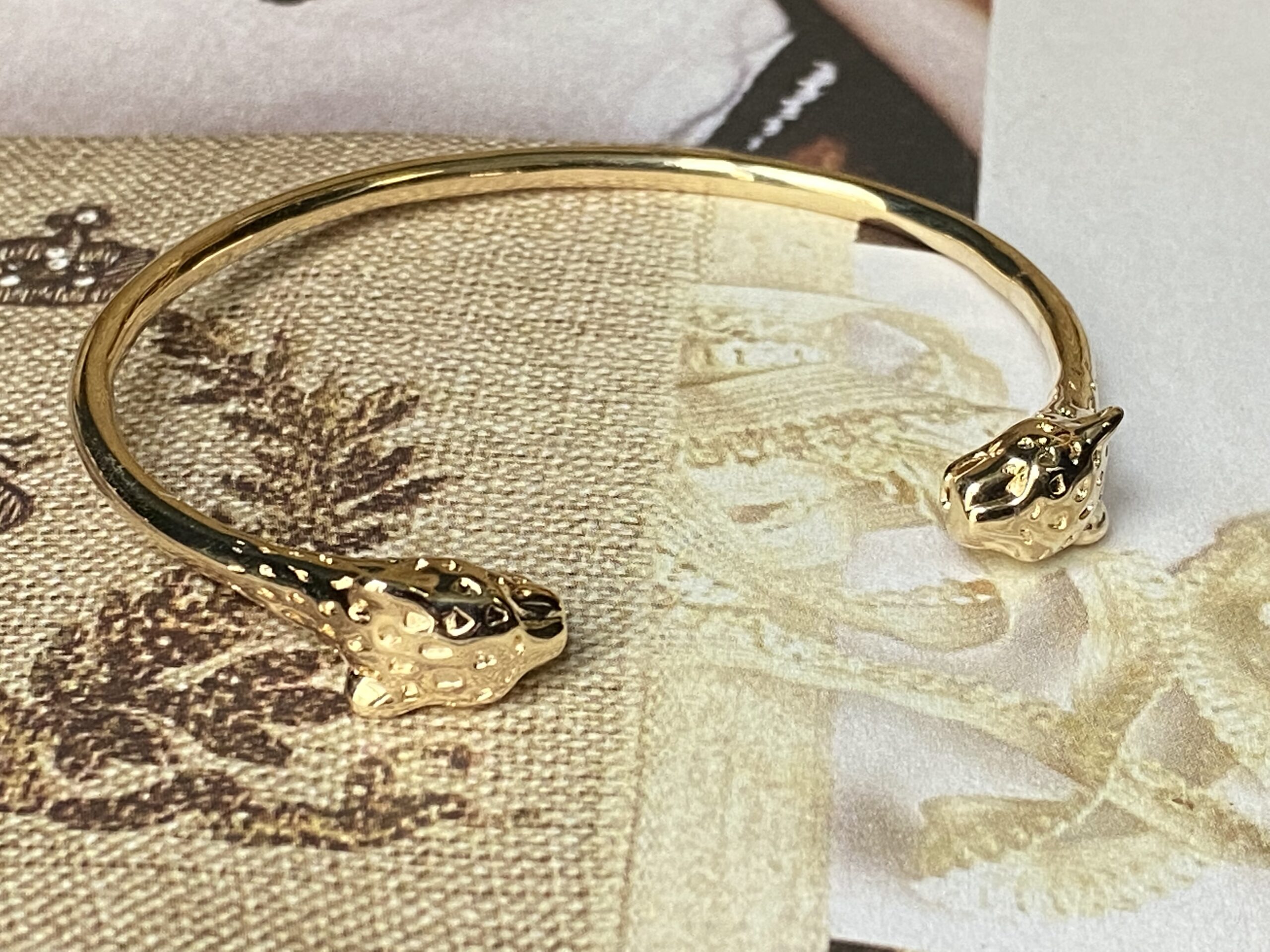 Le jonc Irina est en plaqué or. Grande tendance bracelet de cette année avec les 2 têtes de léopard aux extrémités. Bracelet fin
