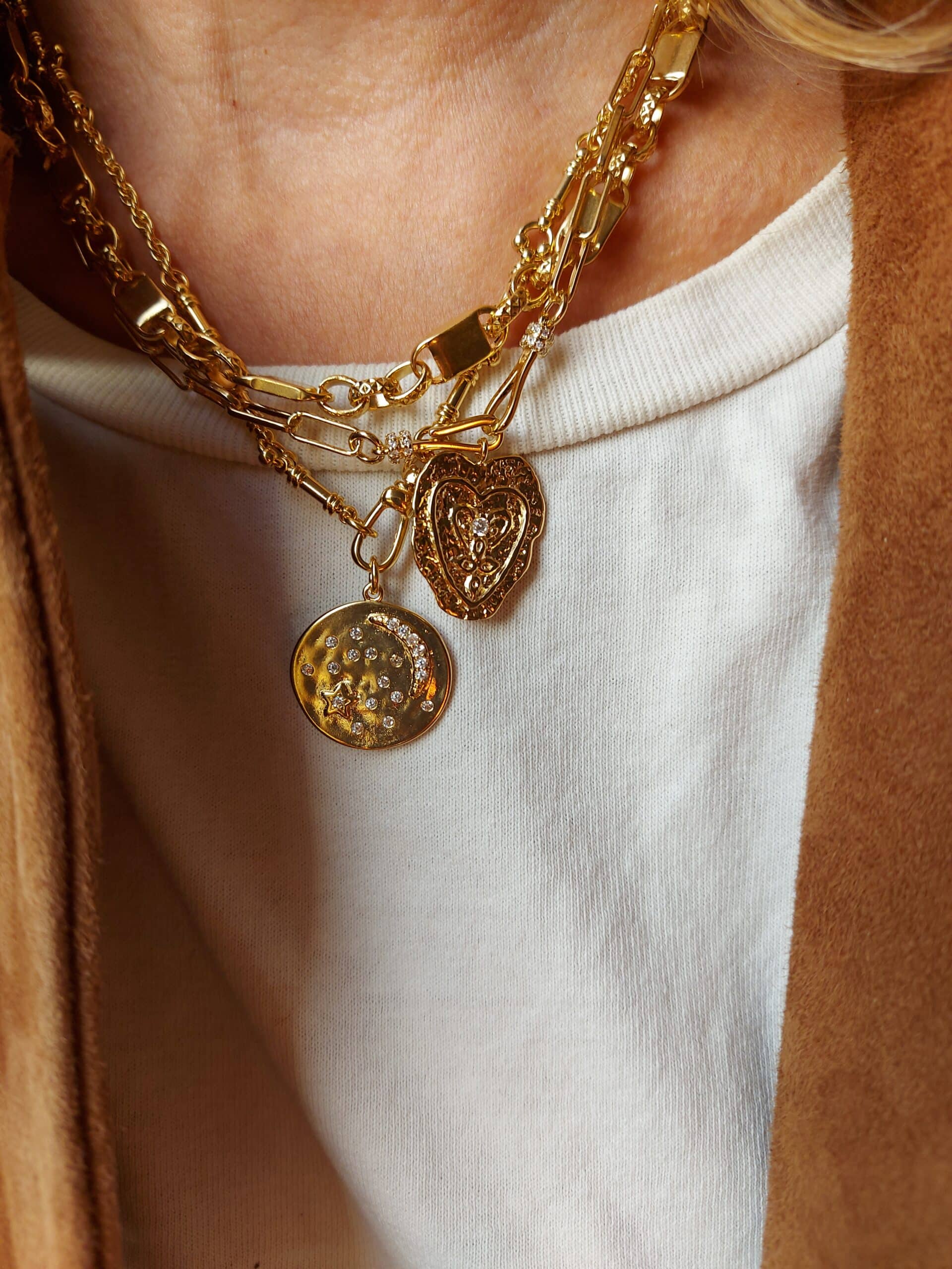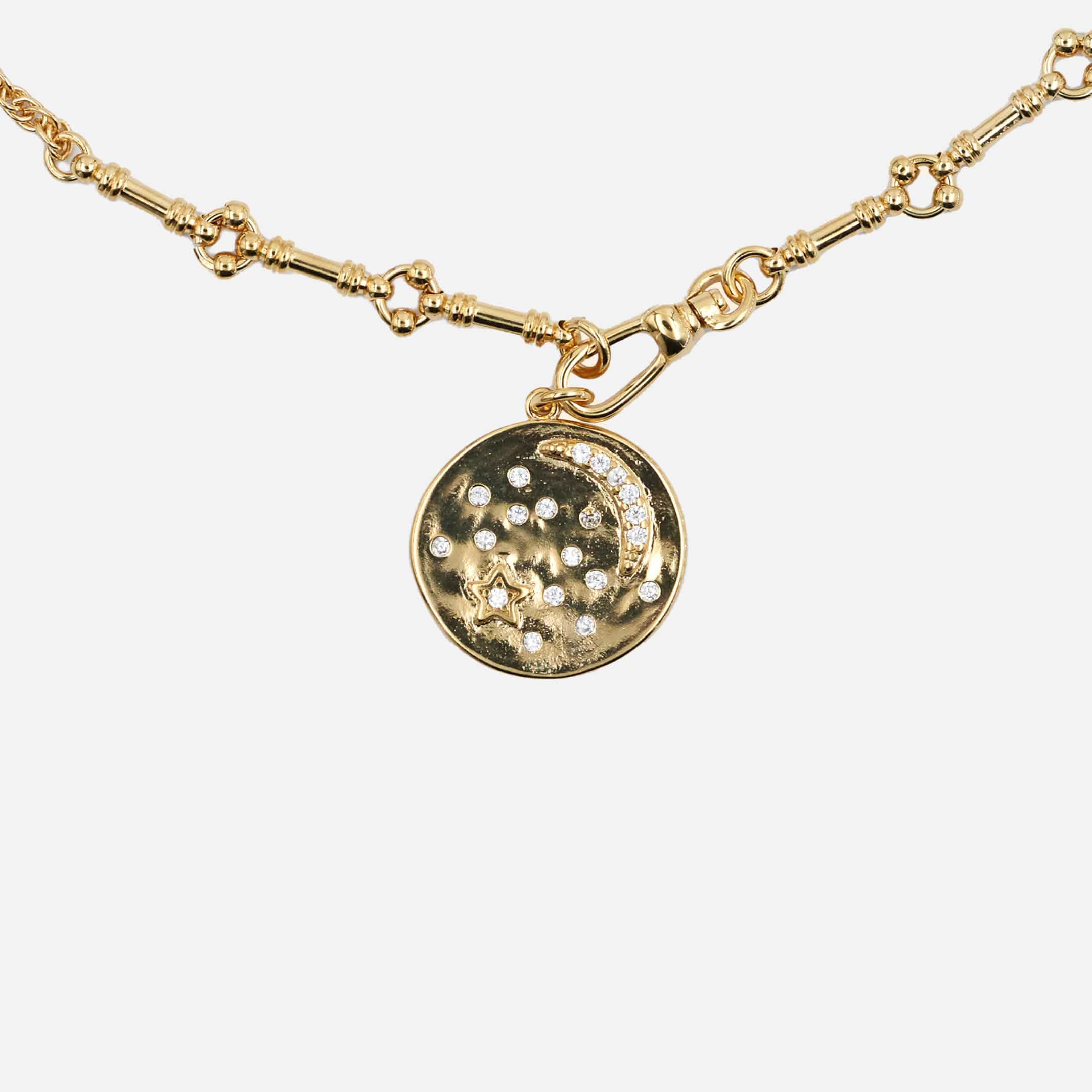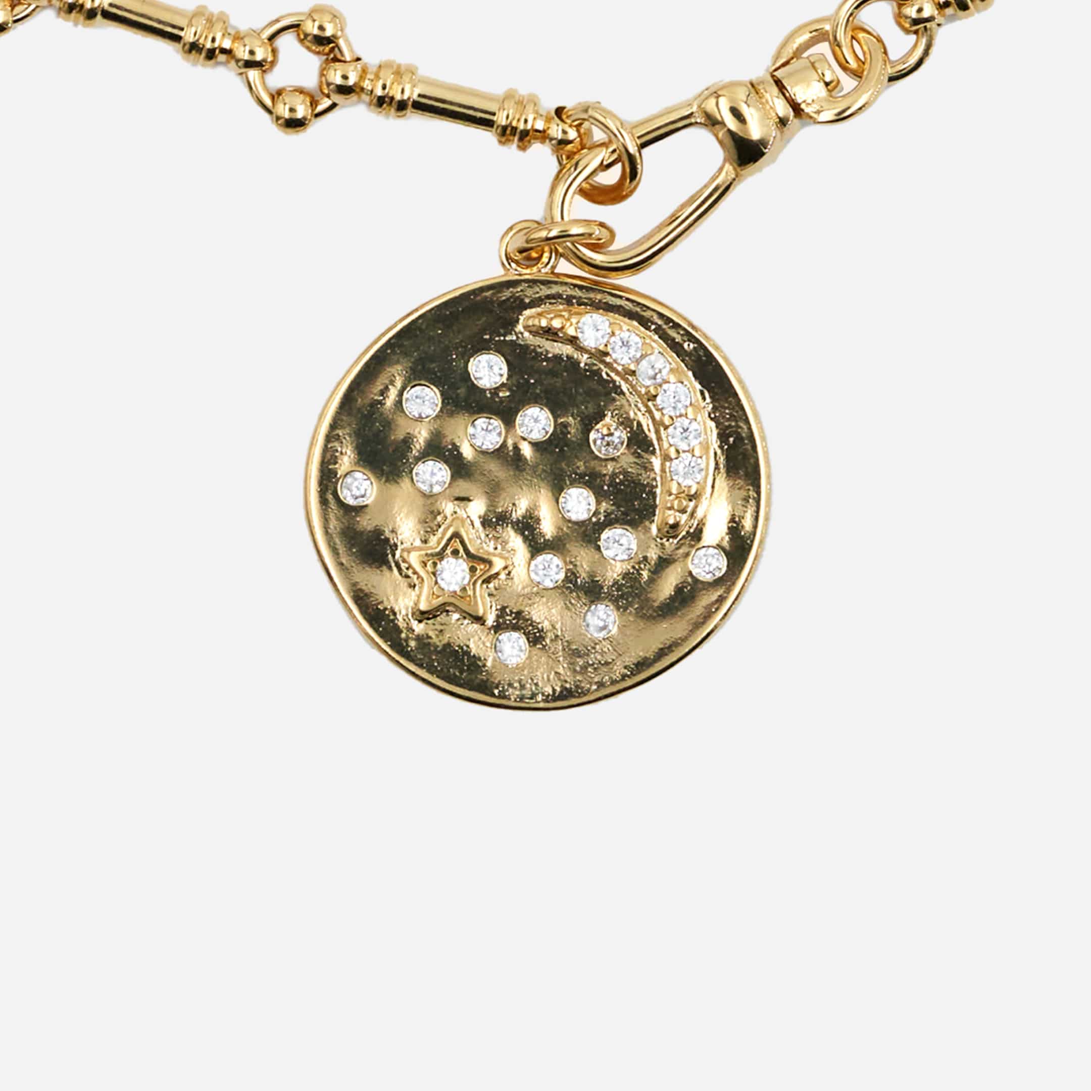 Dolita a sélectionné cette médaille Virginie Berman pour son charme poétique. En laiton doré à l’or fin 18 carats (plaqué or 3 microns), le bijou s’illumine d’oxydes de zirconium incrustés dans un motif nuit étoilée. Une pièce précieuse, délicate et résolument féminine.
