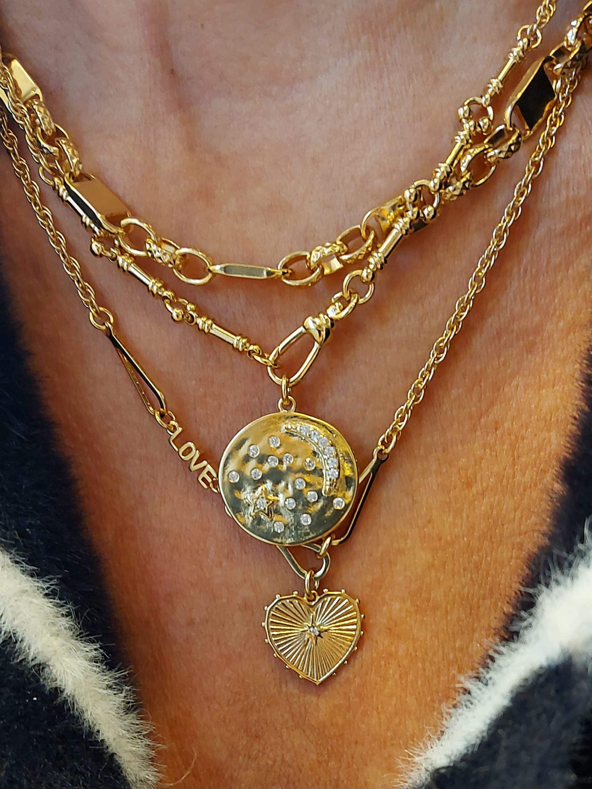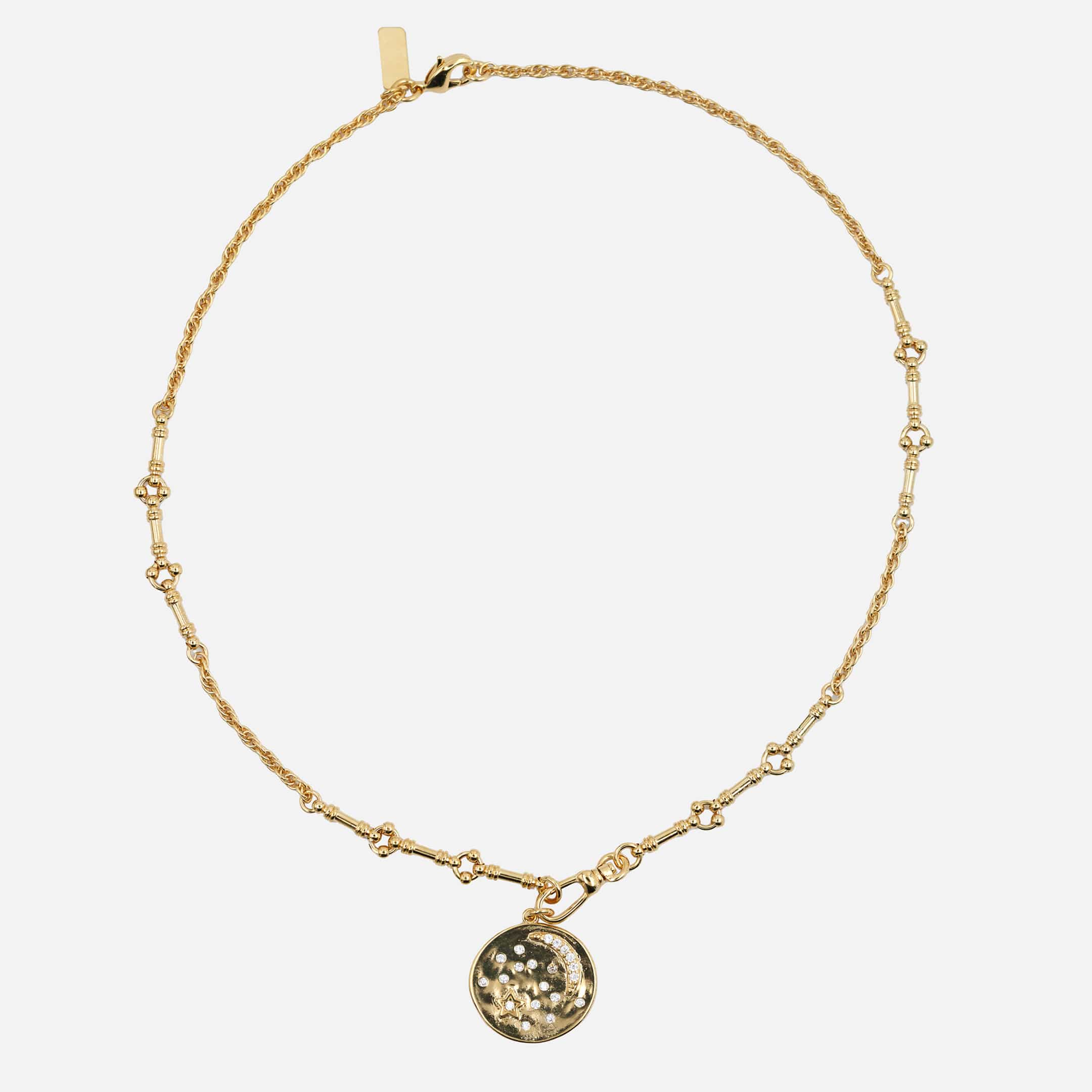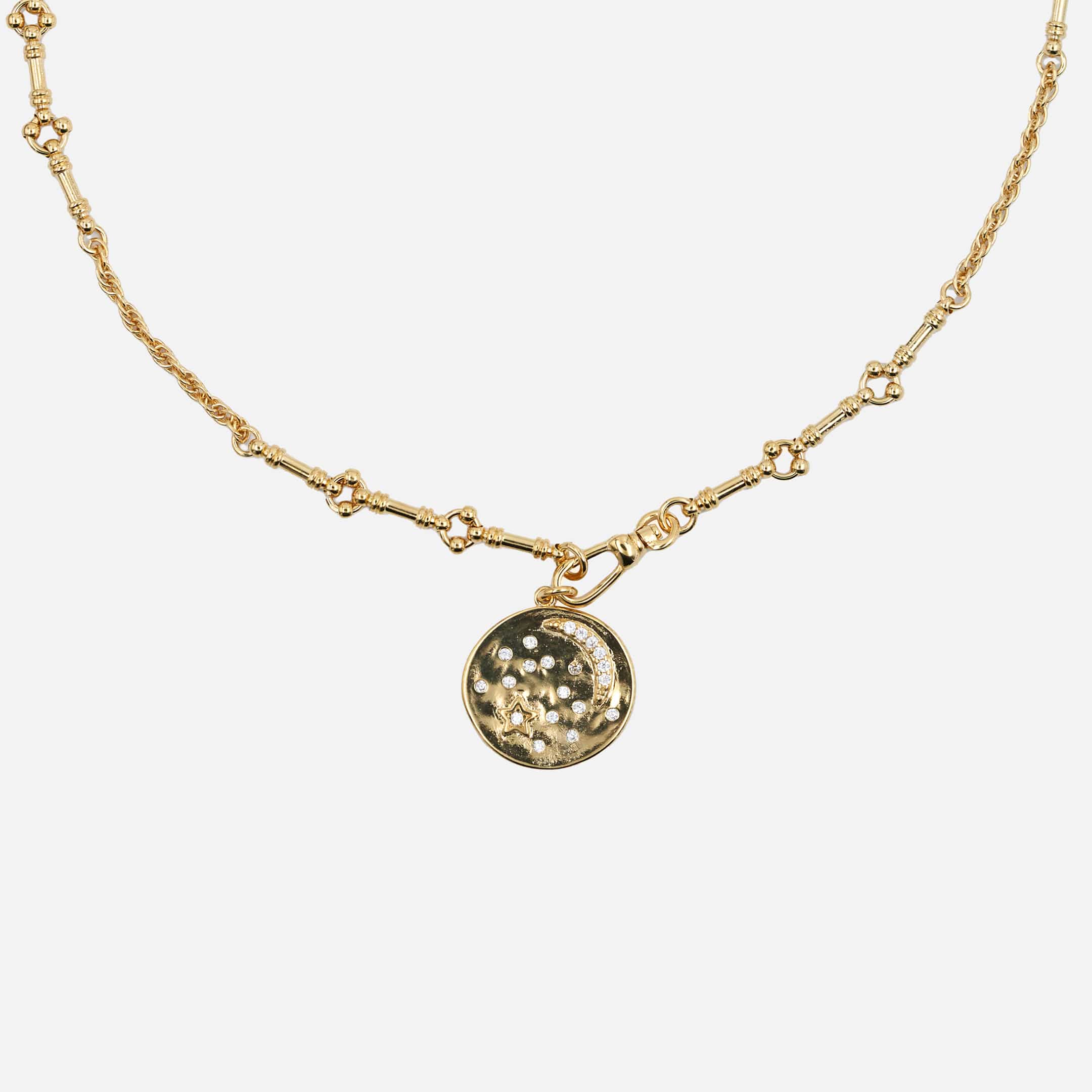 Dolita a sélectionné cette médaille Virginie Berman pour son charme poétique. En laiton doré à l’or fin 18 carats (plaqué or 3 microns), le bijou s’illumine d’oxydes de zirconium incrustés dans un motif nuit étoilée. Une pièce précieuse, délicate et résolument féminine.