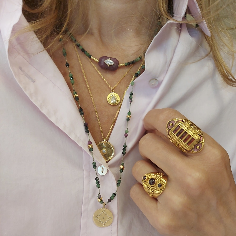 Collier femme doré Hope Ego : le collier est fabriqué par Hanka In avec des zircons pour sublimer le pendentif .