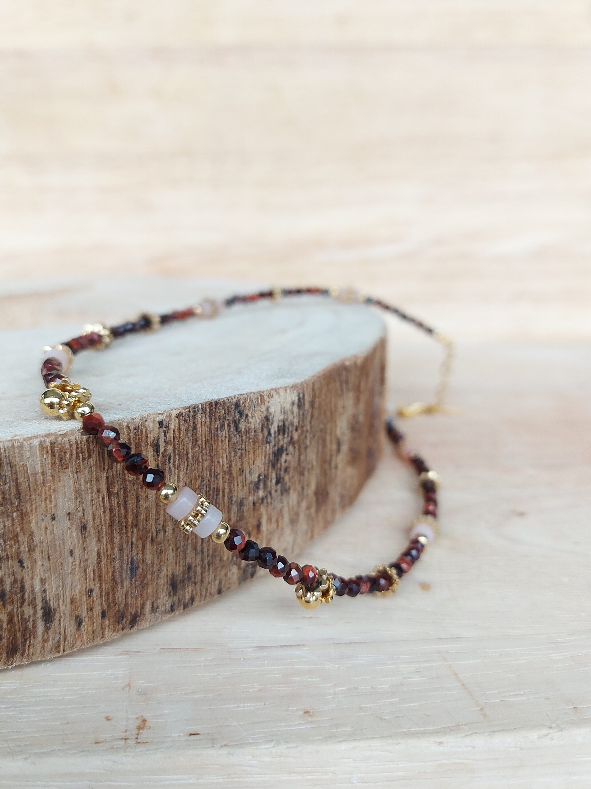 Réalisé dans les ateliers de Petite Madame, ce collier en pierres naturelles raffiné et élégant vous accompagnera au fil du temps. Collier à porter seul ou en accumulation. Possibilité de le porter également en bracelet double rang.