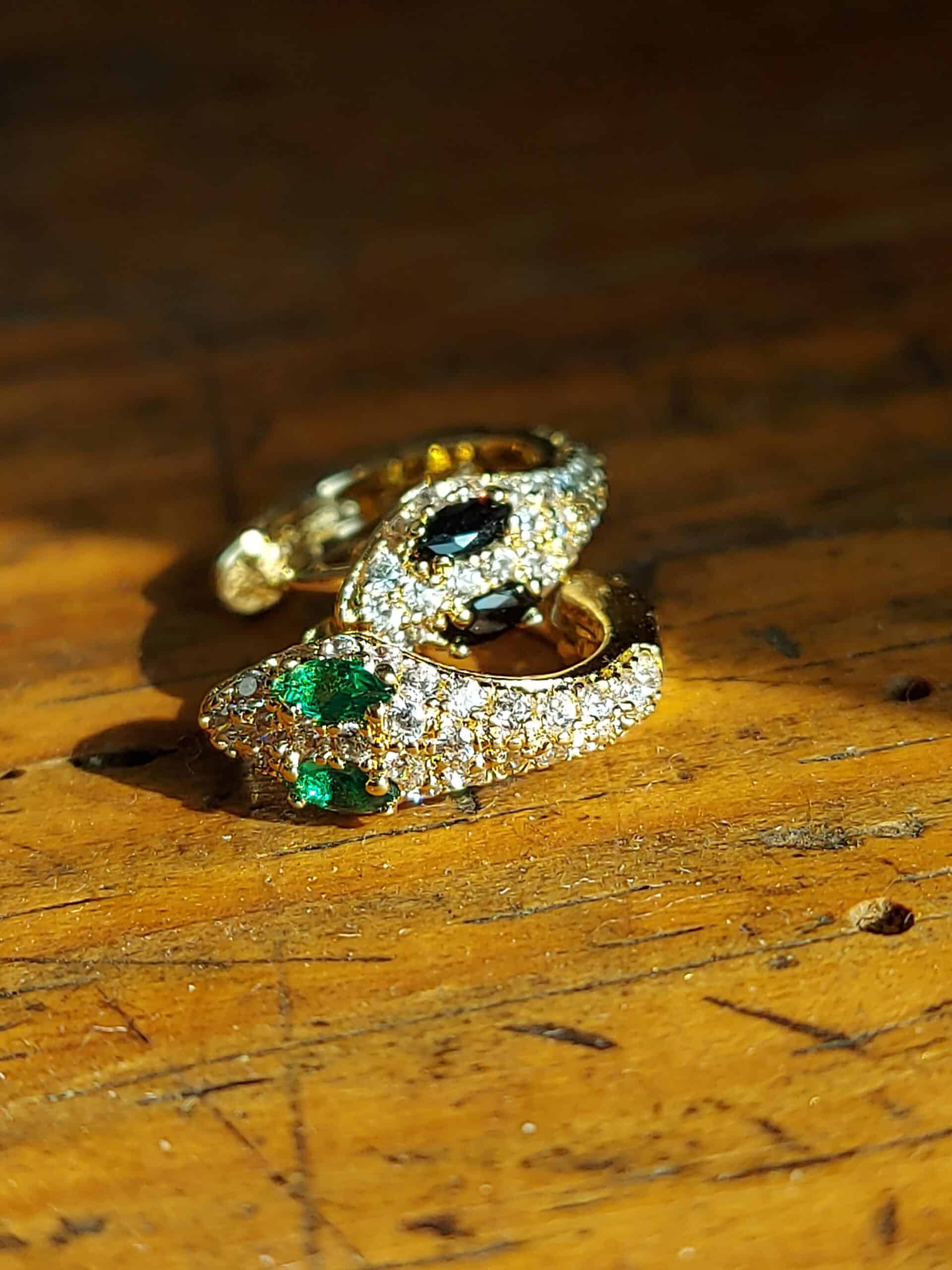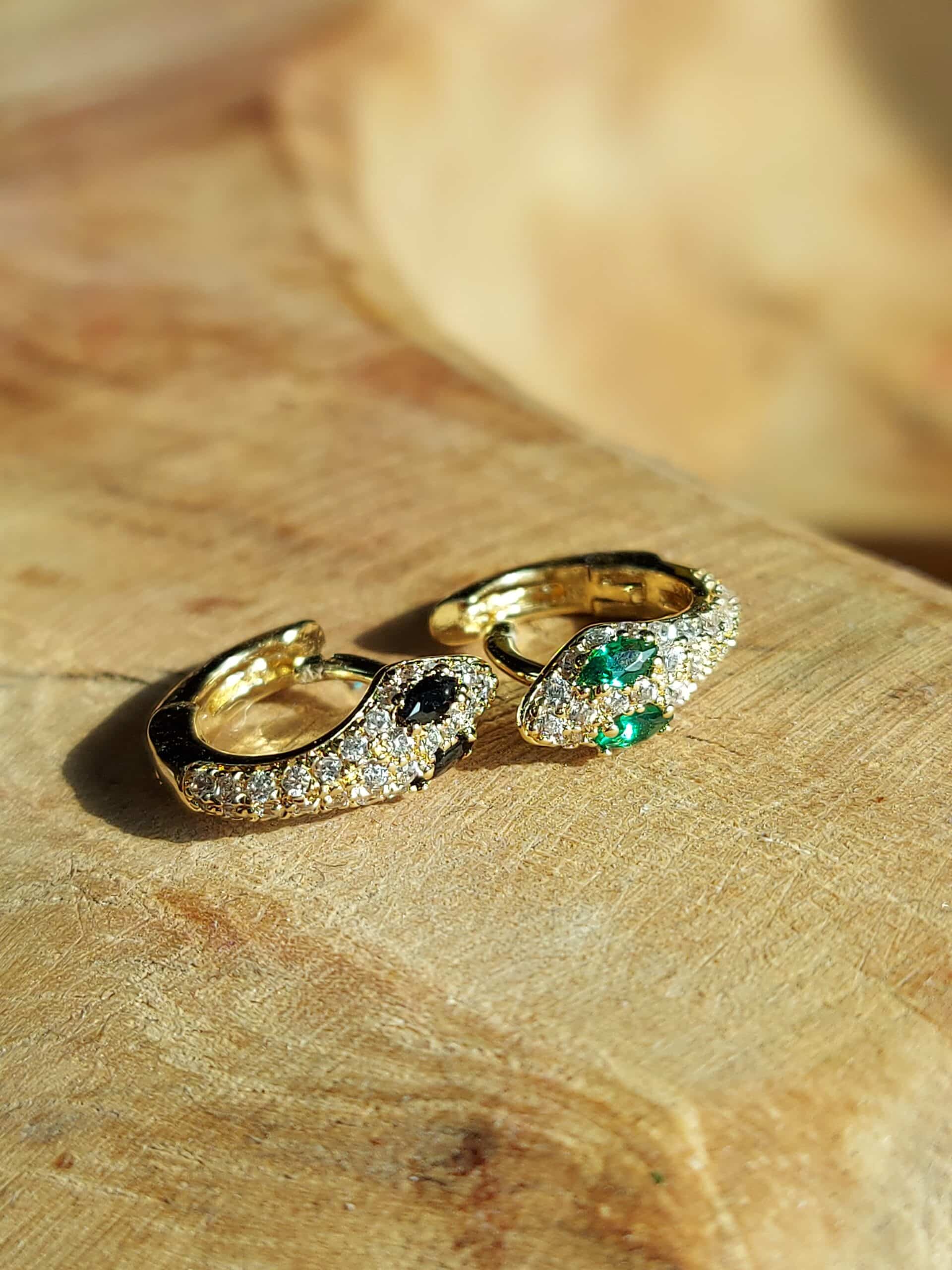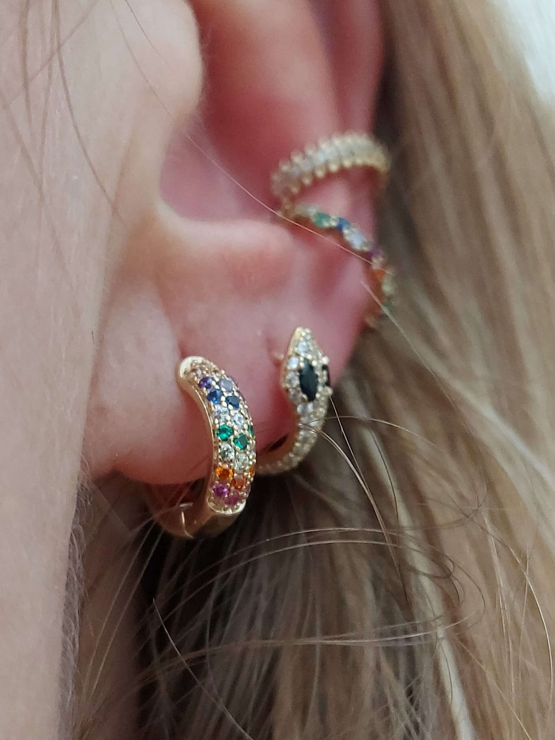 La boucle d’oreille serpent créole Sapa en plaqué or de qualité avec oxydes de zirconium blanc et bleu.