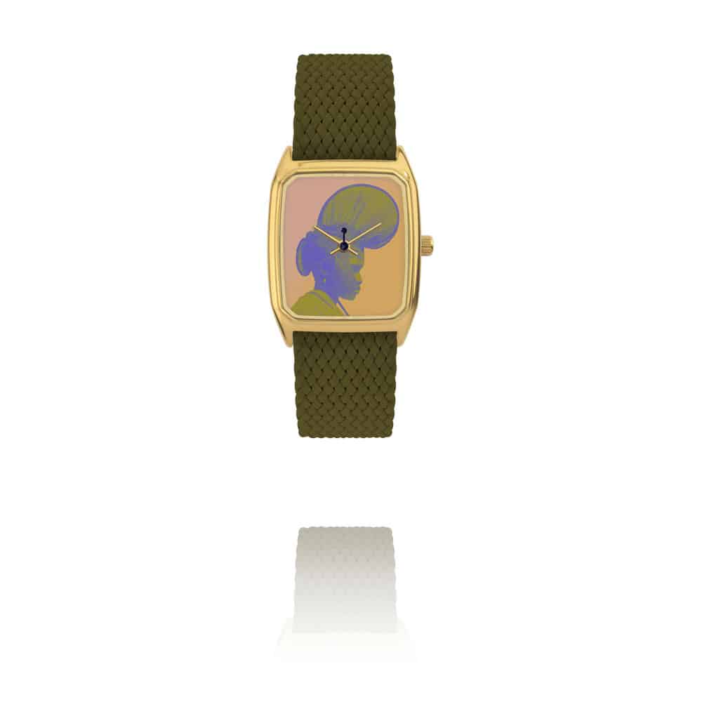 La montre Foulahstyle et bracelet kaki est réalisé en France par le créateur de LAPS. Le cadran est en acier inoxydable et le mouvement quartz Japonais Miyota. Montre chic et de super qualité française Made in France