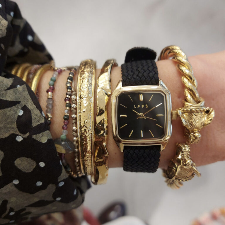 La Montre Prima nova noir est réalisé en France par le créateur de LAPS. Le cadran est en acier inoxydable et le mouvement quartz Japonais Miyota. Montre chic et de super qualité française Made in France.
