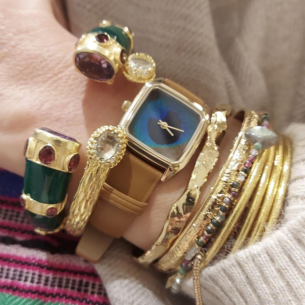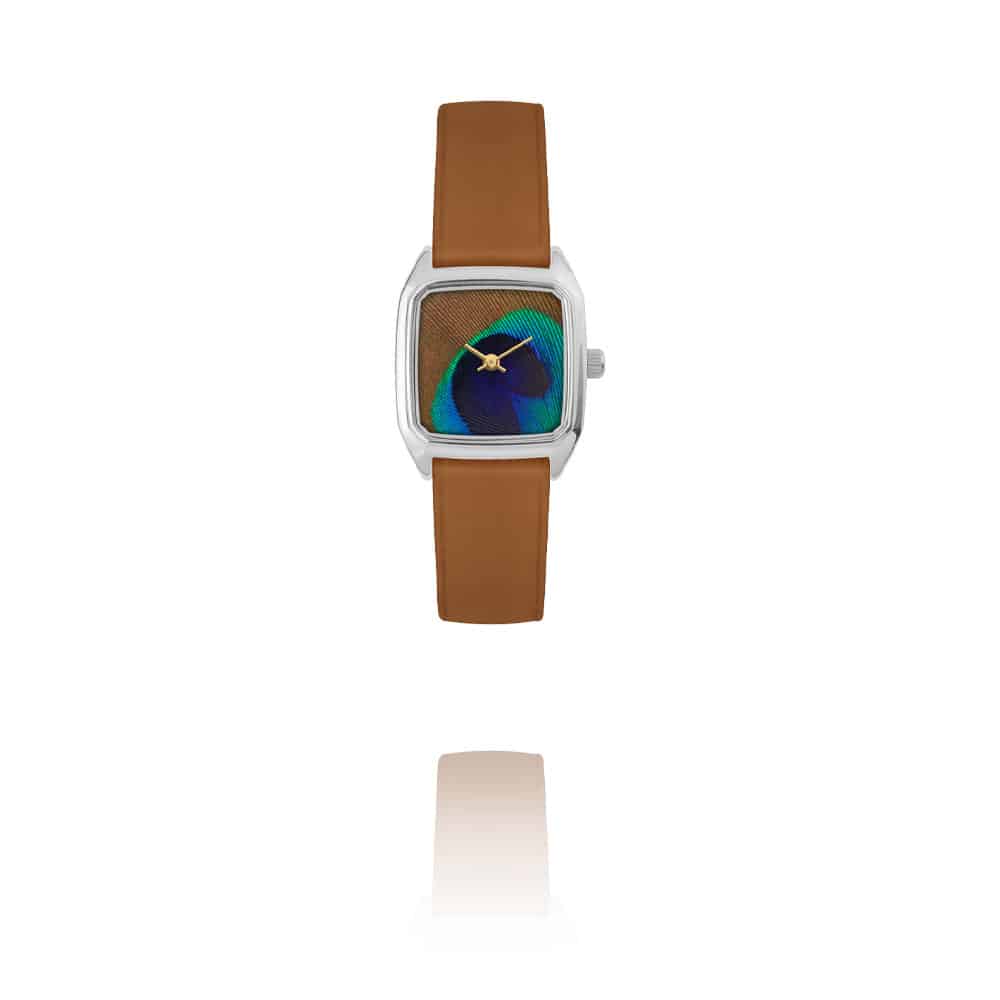 La montre Prima Paon marron est réalisé en France par le créateur de LAPS. Le cadran est en acier inoxydable et le mouvement quartz Japonais Miyota. Montre chic et de super qualité française Made in France.